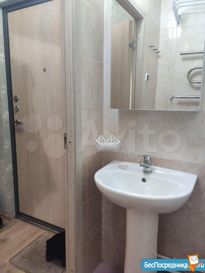 Квартира после косметического ремонта, это зонированная студия, по сути однокомнатная квартира с окном в спальной зоне и выходом на лоджию в кухонной зоне, вся необходимая мебель и техника есть. Сумма залога оговаривается. Возможность с животными оговаривается
