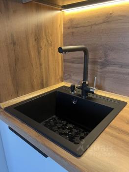 - кухонный гарнитур со встроенной техникой (варочная панель, посудомоечная машина, микроволновка-гриль, холодильник);