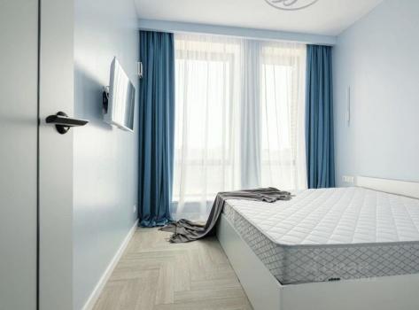 В спальне установлены шторы блэкаут. Матрас двусторонний, стороны разной жёсткости.