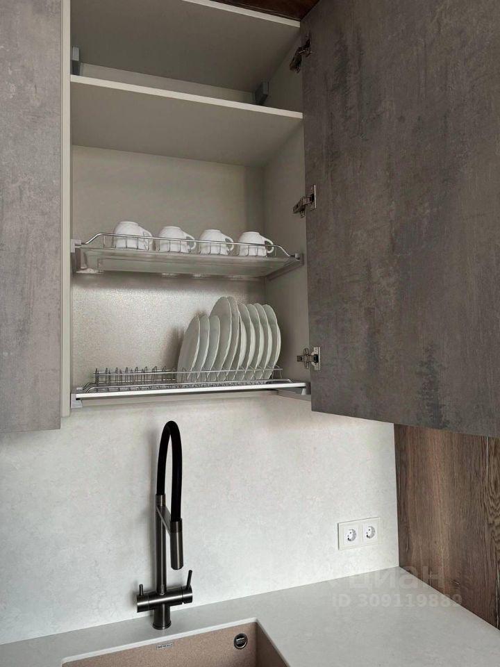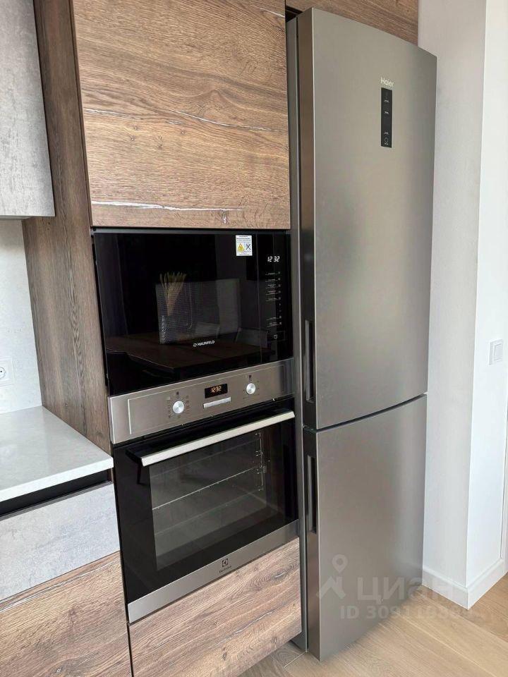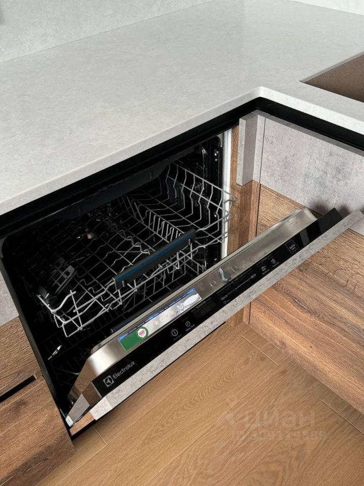 В квартире установлена вся необходимая техника: посудомоечная машина, встроенный холодильник, варочная панель, вытяжка, духовой шкаф с функцией микроволновки, стиральная машина с инверторным двигателем, два телевизора с диагональю 55 дюймов, электрический водонагреватель и робот-пылесос с зарядной станцией под шкафом в прихожей.