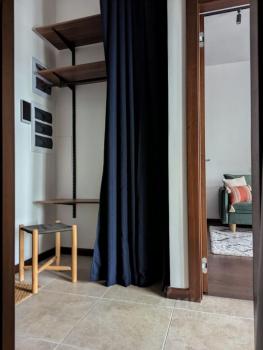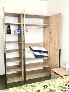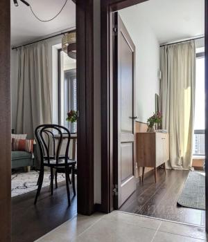 В квартире большие функциональные шкафы-купе с множеством отсеков, что позволяет легко разместить одежду и другие вещи, нужные в быту, не загромождая пространство квартиры.