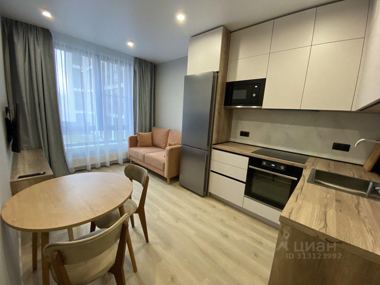 Квартира оформлена в современном дизайнерском стиле, что создает атмосферу уюта и комфорта. В комнате и на кухне есть вся необходимая мебель. Из техники — холодильник, телевизор и стиральная машина. Санузел совмещенный и оборудован ванной. Из окон открывается вид во двор, что обеспечивает тишину и спокойствие.