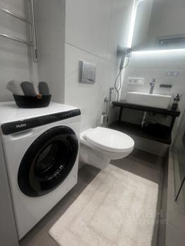 - Ванная комната, оборудованная душевой кабиной, электрическим полотенцесушителем , туалетом, гигиеническим душем, феном, стиральной машиной;