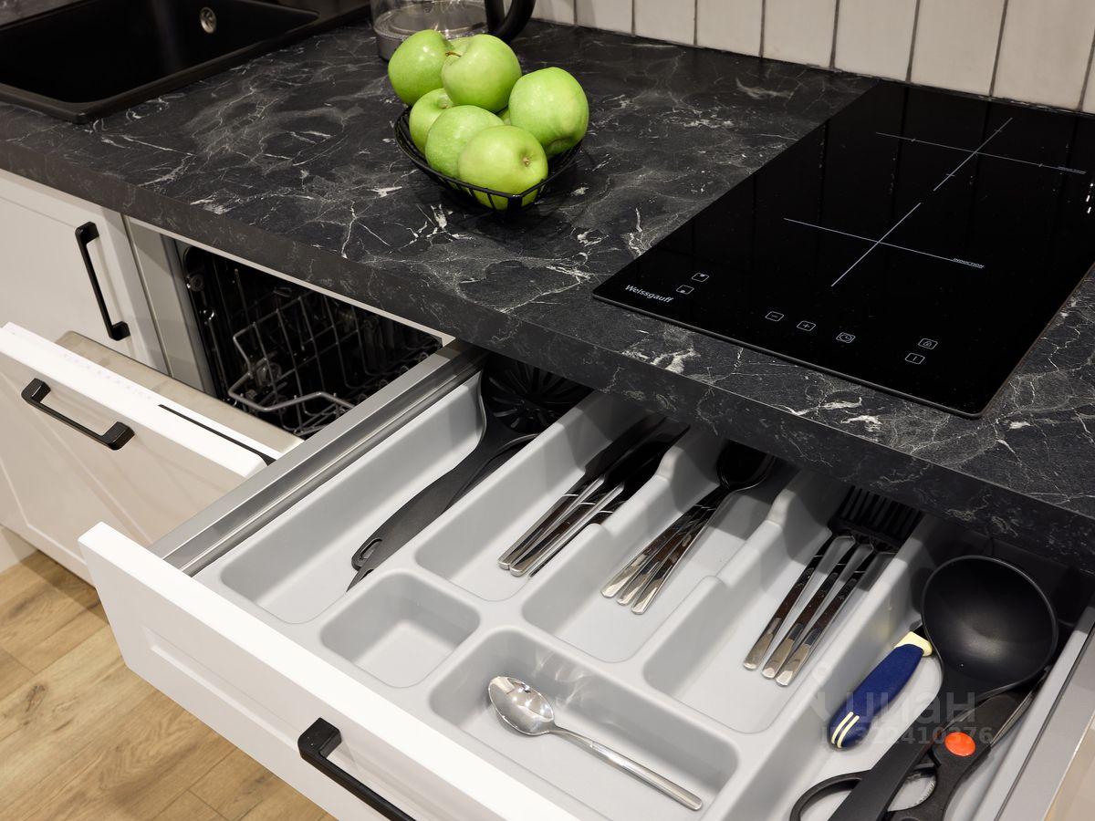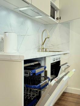 • Кухня со всей встроенной техникой (посудомоечная машина, духовой шкаф, индукционная варочная панель, микроволновая печь, вытяжка, холодильник)