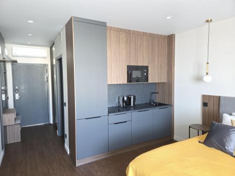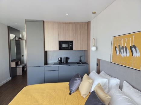 Предлагаются АБСОЛЮТНО НОВАЯ резиденциия с отдельной спальной комнатой и выделенной зоной кухни в долгосрочную аренду, на 11 месяцев с последующим продлением.