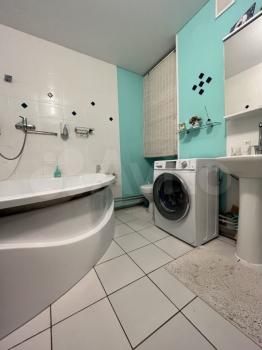 В квартире есть хорошая бытовая техника, включая кондиционер, робот-пылесос, увлажнитель воздуха и индукционную плиту. Также установлена стиральная машина с режимом сушки и посудомоечная машина. В квартире два телевизора (на кухне и в спальне) и гардеробная.