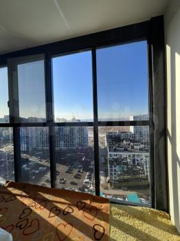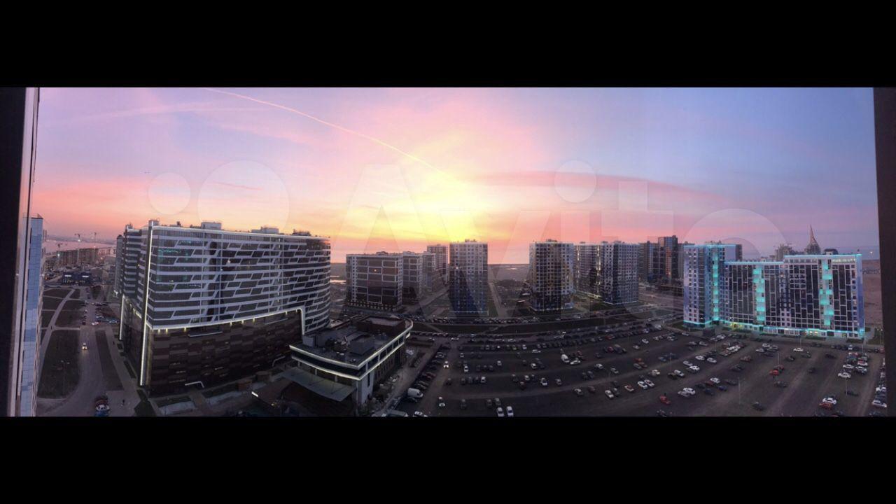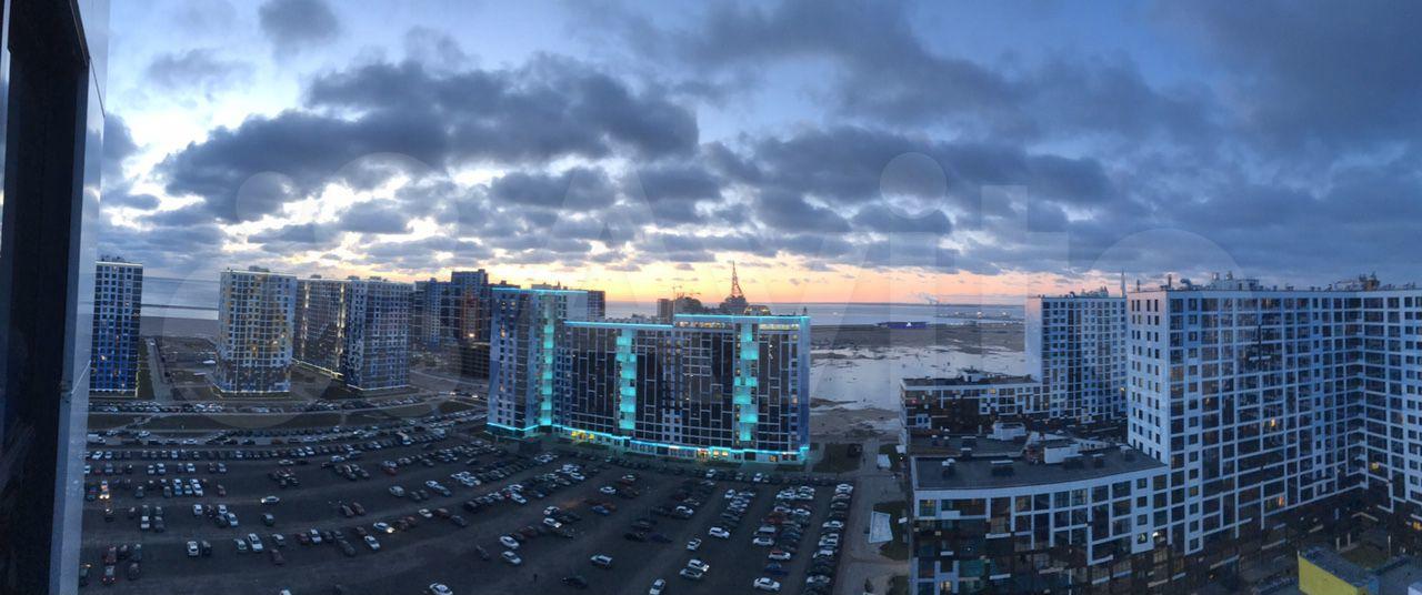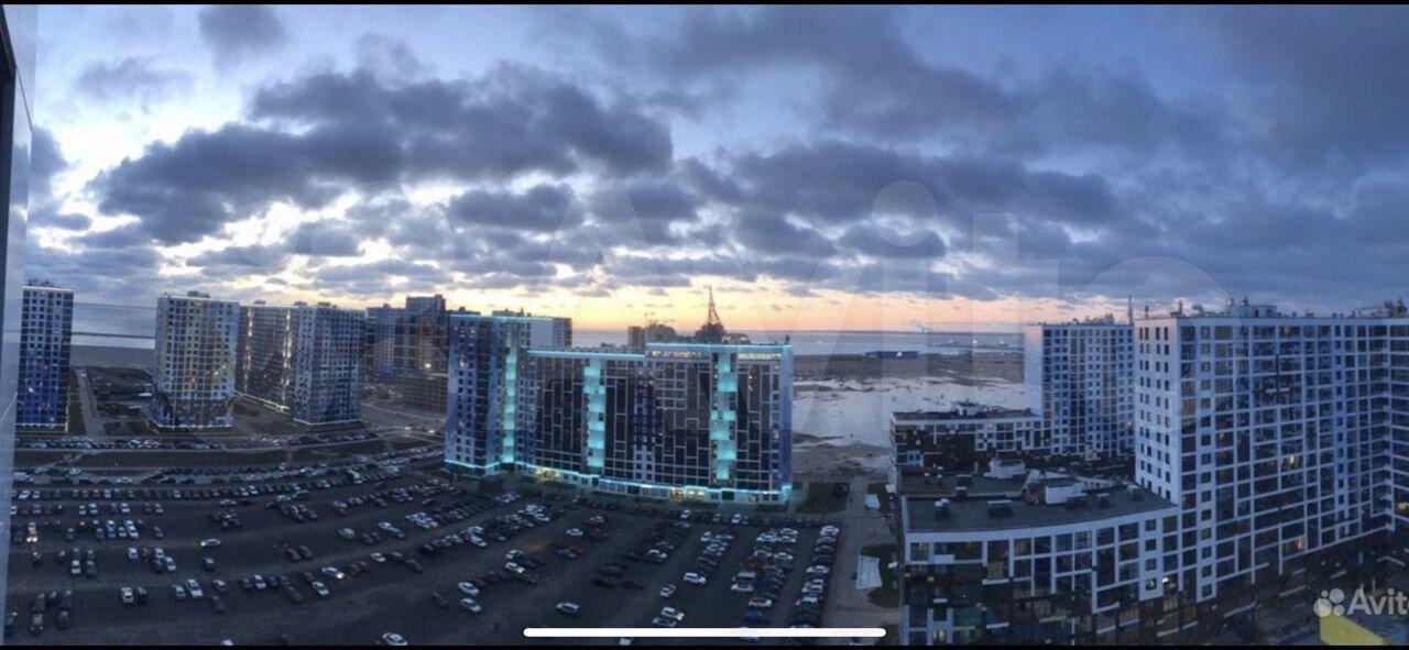 Лоджия 10 кв.м на обе комнаты. На лоджии установлено подвесное кресло для вечернего созерцания заката над морем. Из панорамных окон открывается вид на залив, круизные лайнеры и Лахта-центр. Транспортная доступность. За 15 минут можно добраться до центра города, плюс рядом выезд на ЗСД.
