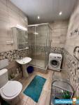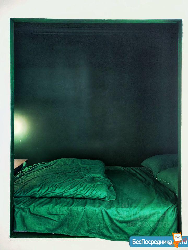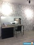 В спальне просторная кровать king-size, размером 2х2 м, с комфортным, высоким матрасом. Напротив кровати Смарт телевизор. Там же туалетный стол с огромным зеркалом и комодом, вместительный шкаф.