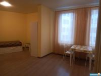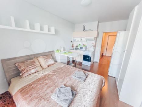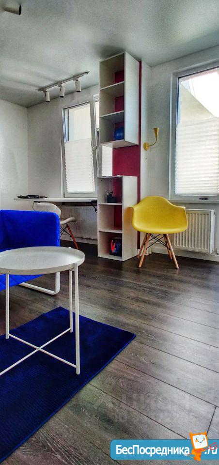 В квартире сделан косметический ремонт, поэтому она выглядит свежо и аккуратно. Пространство студии организовано так, чтобы было комфортно жить и работать. В комнате и на кухне есть вся необходимая мебель. Ванная комната с полноценной ванной и стиральной машиной. Также есть холодильник, телевизор и стиральная машина. Окна выходят на улицу, что делает квартиру светлой и уютной. Просторная лоджия, где можно отдохнуть на свежем воздухе.
