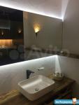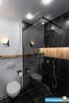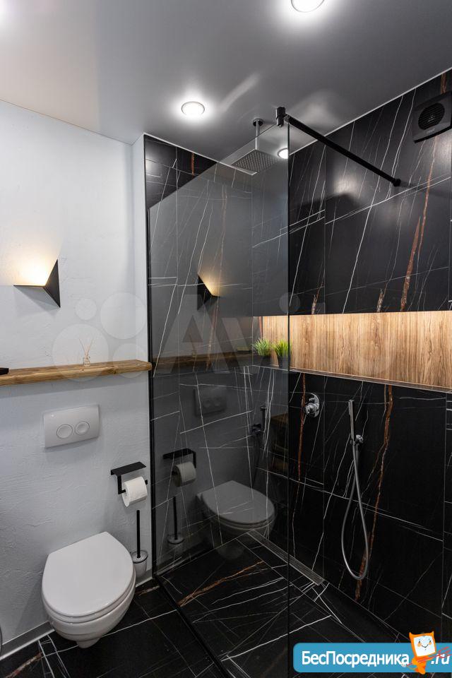 Ванная комната выложена крупноформатным керамогранитом Black Saint Laurent. Просторная душевая, в которую можно поместиться даже вдвоем)). Пол душевой без подиума, душ тропический и ручной.