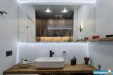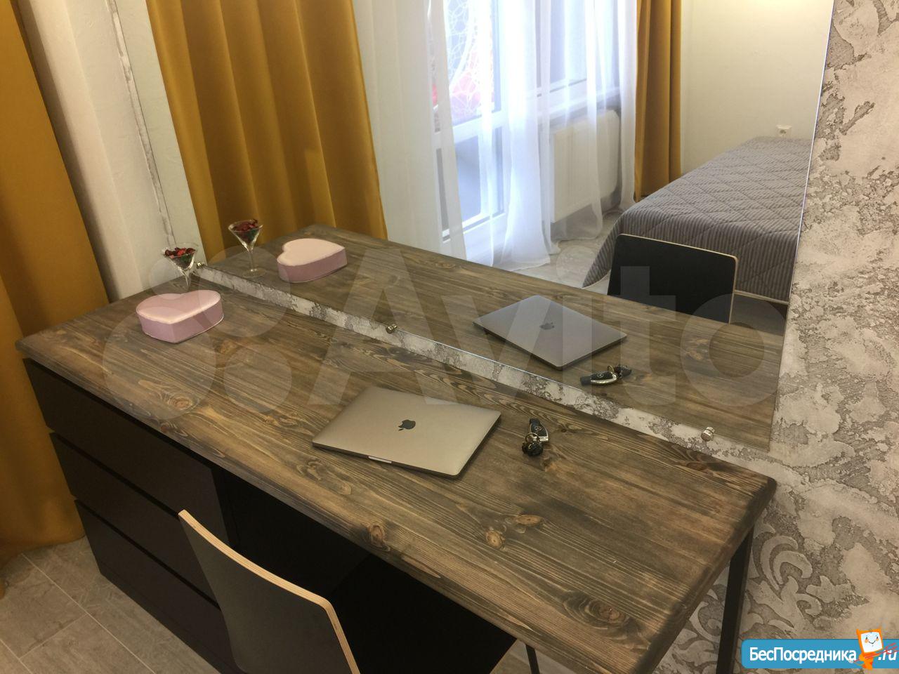 В квартире имеется все необходимое для комфортного проживания одного или двух человек: просторная ванная комната, продуманная кухня, приватное спальное место, большой рабочий стол у окна и гостиная зона.