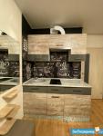 В кухне-гостиной удобный диван, рабочее место, а также остров с барной стойкой. Кухня укомплектована всем необходимым: холодильник, варочная панель, посуда, микроволновая печь, кухонные принадлежности. .