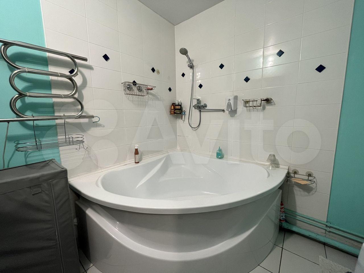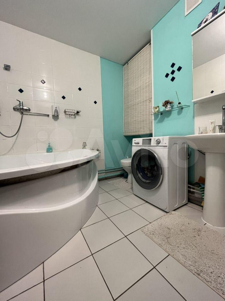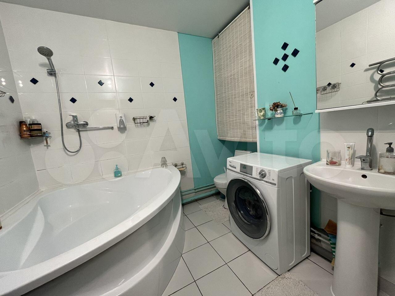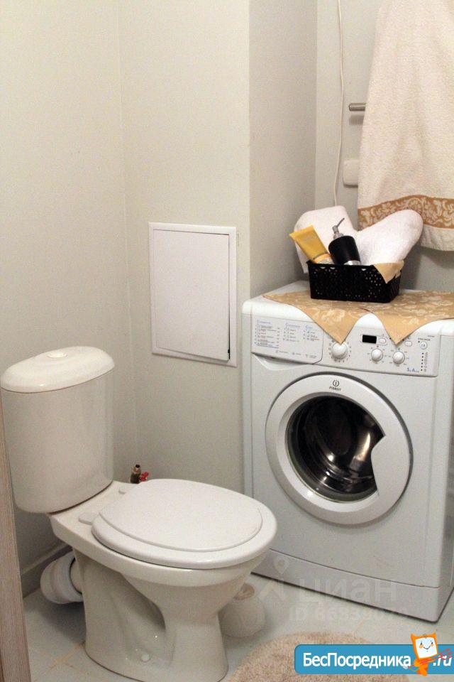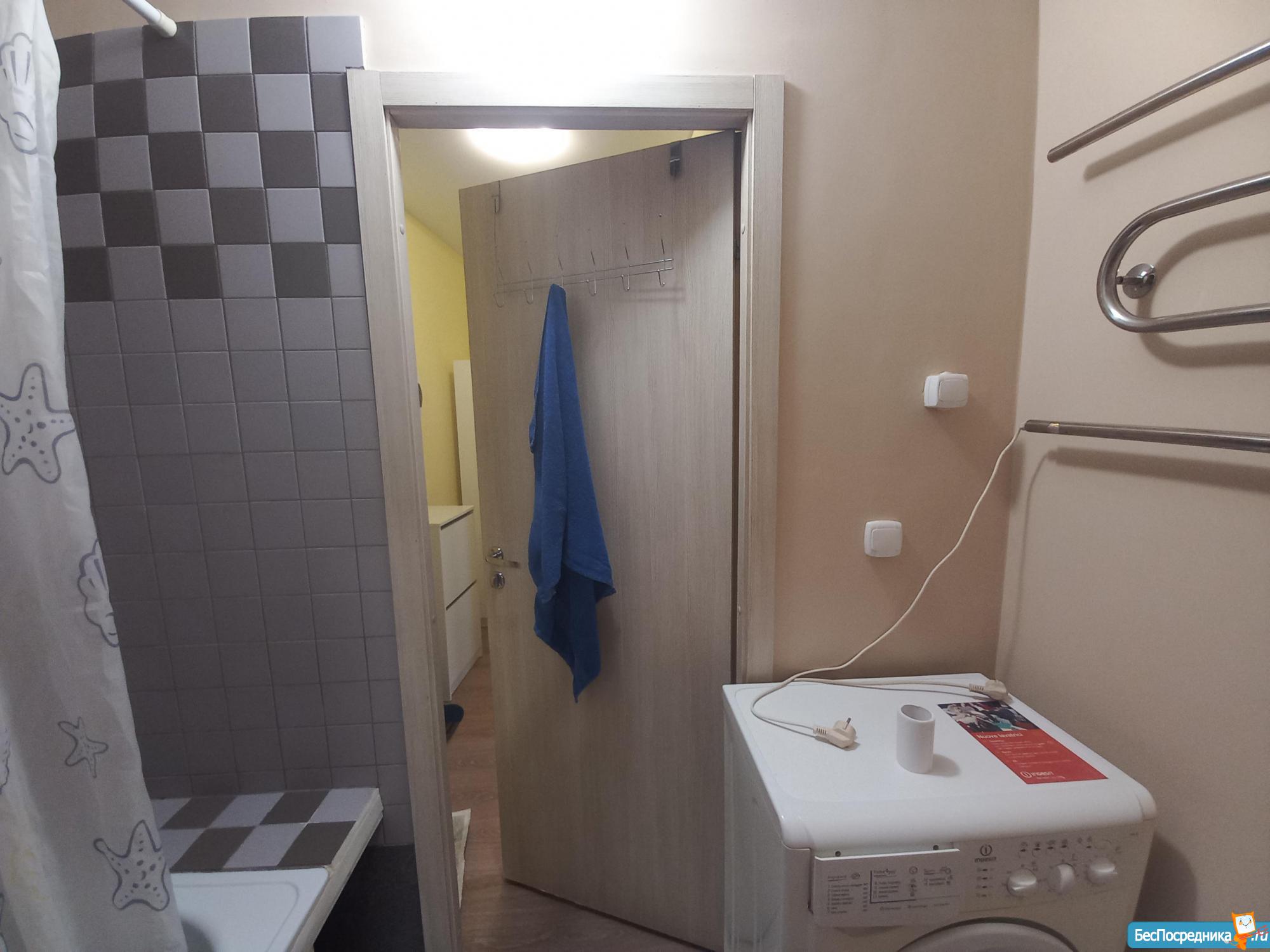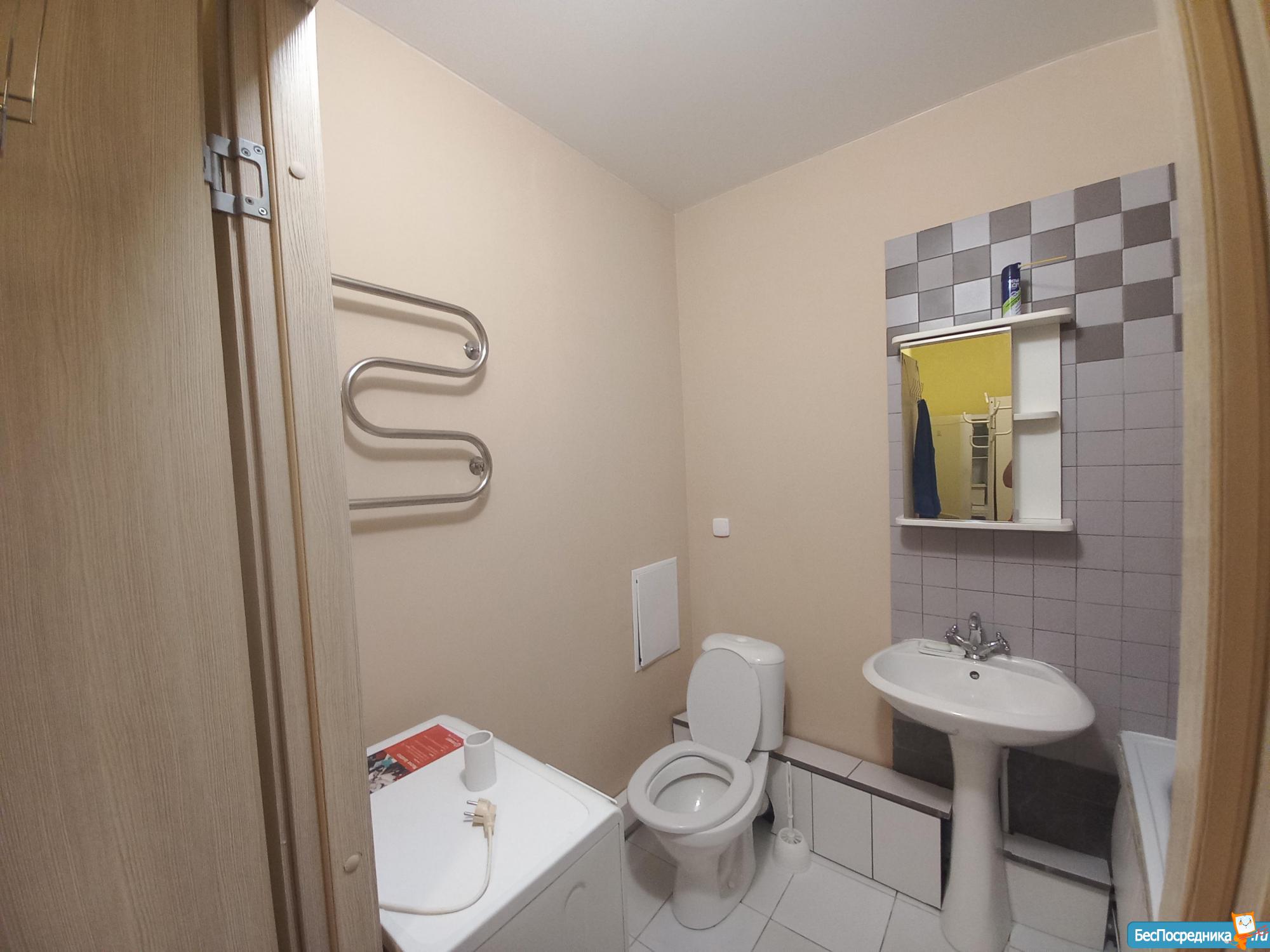 В ванной комнате установлена стиральная машина и водонагреватель.