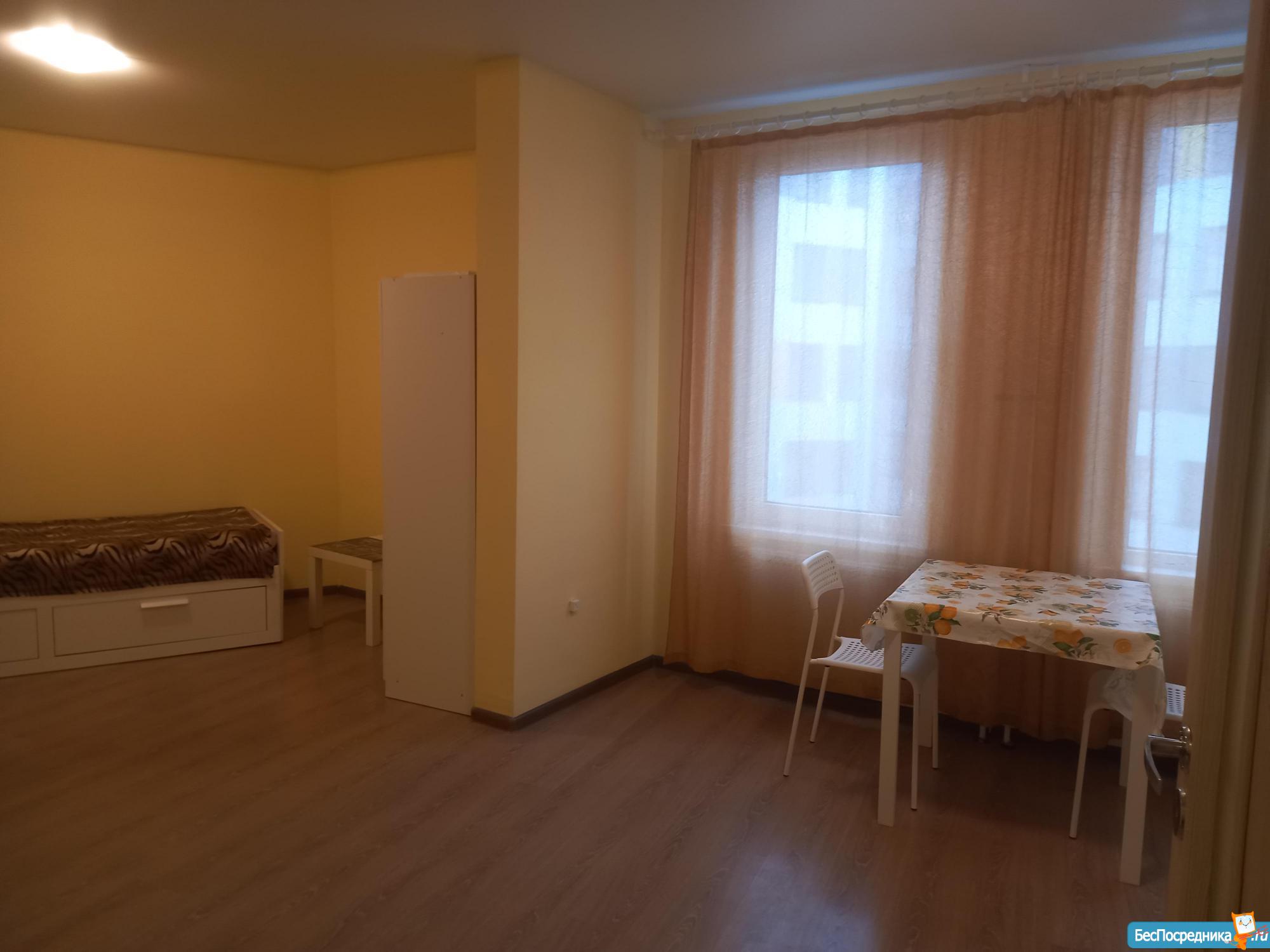 Сдается только на длительный срок просторная (32 метра!) студия на ВО в доме 2018 г. КРУИЗ АПАРТ, теплая, светлая, только что после ремонта, идеальная чистота. Ресепшен, консьерж, панорамные лифты в доме. Рядом продуктовые магазины, кафе, Залив, остановка автобусов. До метро Приморская 5 остановок, пешком 30-35 мин. В квартире есть большой холодильник и стиральная машина Indesit, полотенцесушитель, большая ванна, электроплита с духовкой, вытяжка, фильтр для воды, мебель Икея: кухонные шкафы, стол, стулья, 2 шкафа, галошница, комод, столик, 2спальная кушетка. Много свободного места, можно добавить свою мебель. Оплата 25 тыс +ку, залог. Без комиссии, хозяйка