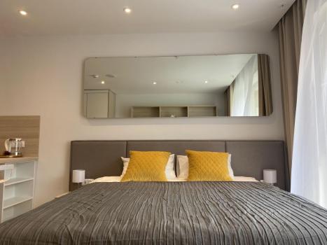 Выбирая наши апартаменты, вы получаете превосходное размещение в центре города, в новом современном здании, с ресторанной зоной на первом этаже, магазином, общей зоной холла, где приятно поработать, встретиться с друзьями и выпить чашечку кофе или чая в кафе.