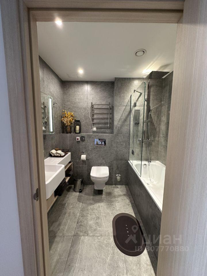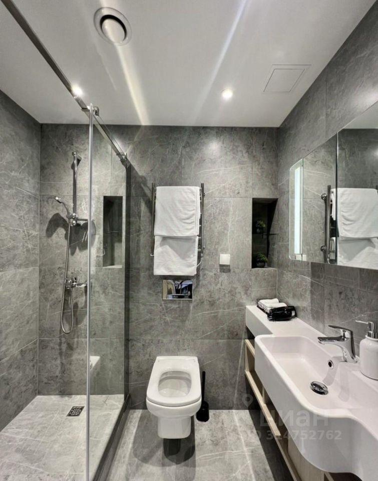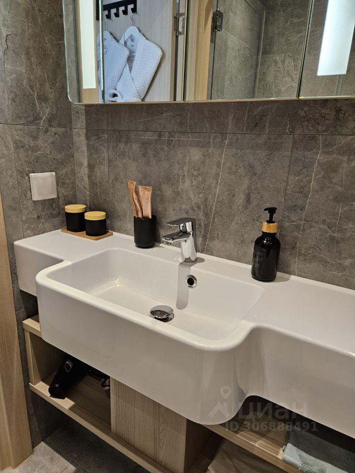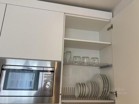 В квартире есть всё необходимое для комфортного проживания. В комнате установлена качественная мебель, а кухня оборудована современной техникой: большим холодильником холодильником, посудомоечной, стиральной машиной, кофемашиной, духовым шкафом и вакууматором. В ванной комнате — душевая кабина. Также есть балкон, где можно наслаждаться свежим воздухом и одним из лучших видов на город.