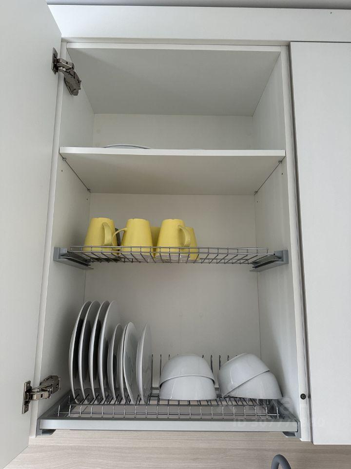 - кухонной зоны с варочной панелью, микроволновой печью, посудомоечной машиной и холодильником.