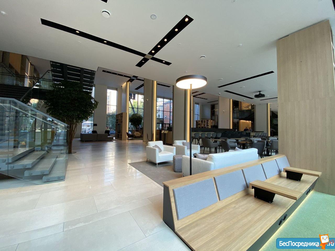 На втором этаже: коворкинг. На последнем этаже: бар. Есть подземный паркинг с возможностью краткосрочной и долгосрочной аренды. Охрана 24 часа.