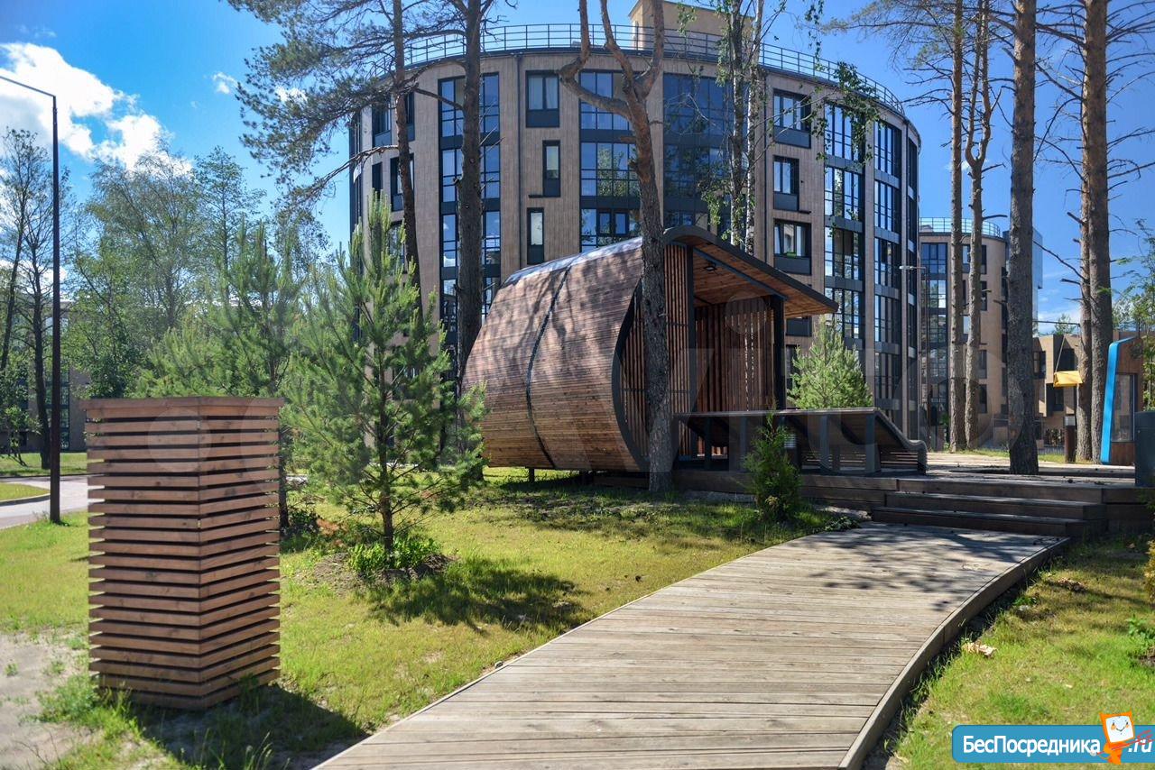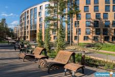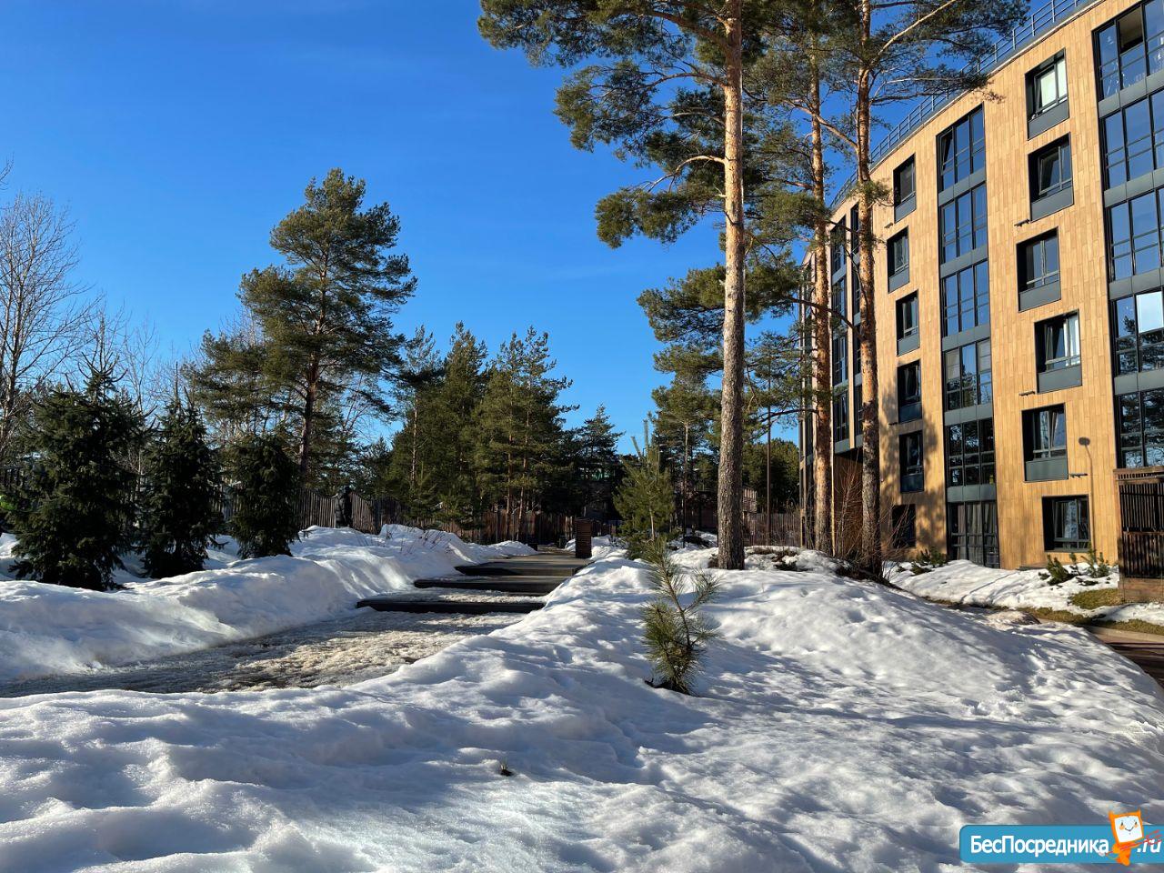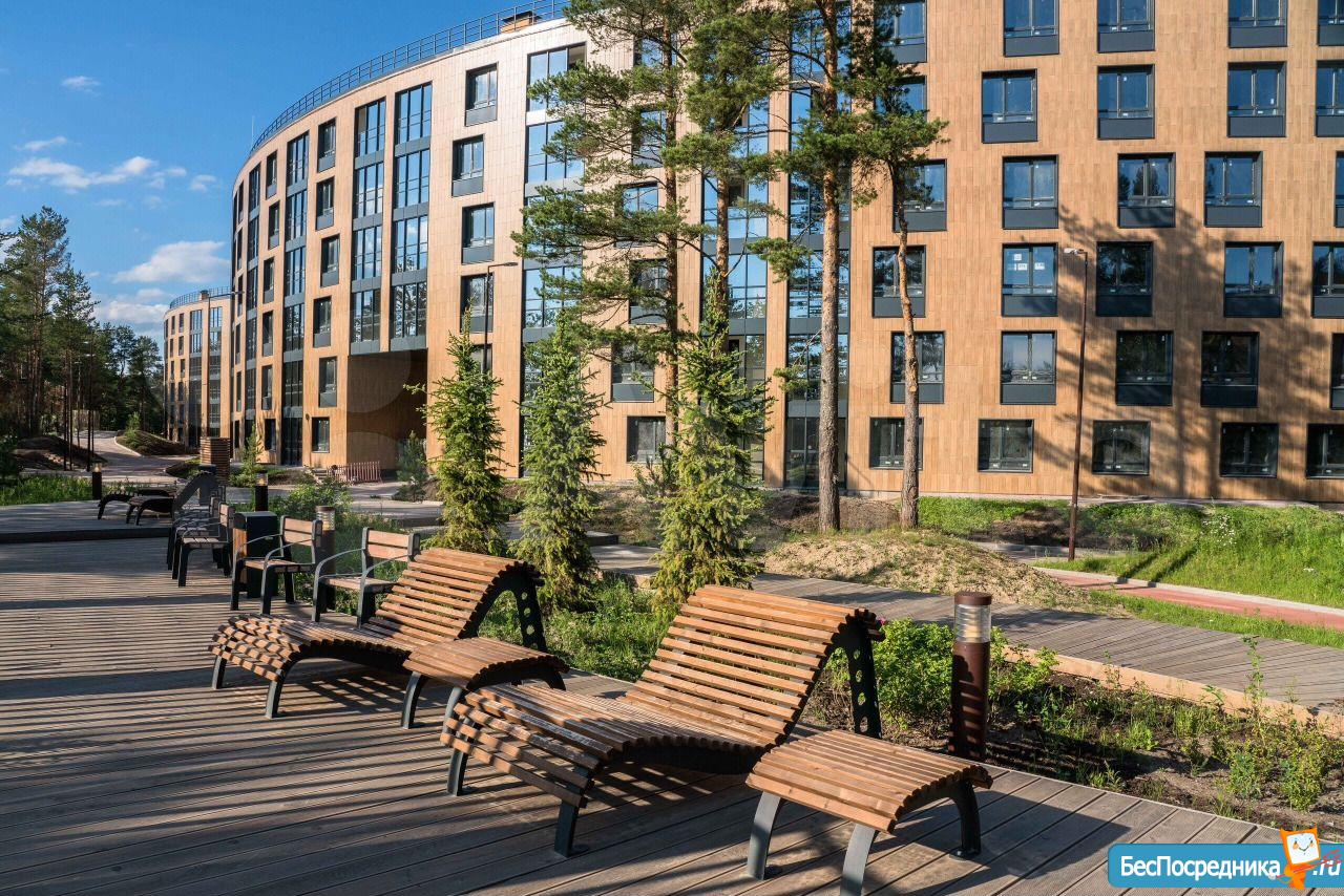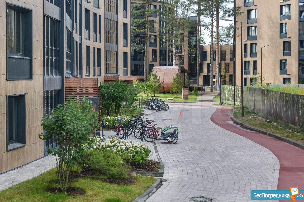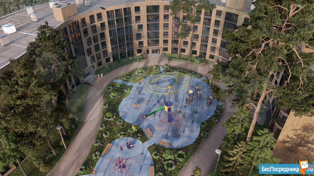 ? Территория комплекса обустроена для полноценного отдыха: сосны, тренажёры, детские площадки, отдельные дорожки для велосипедов.
