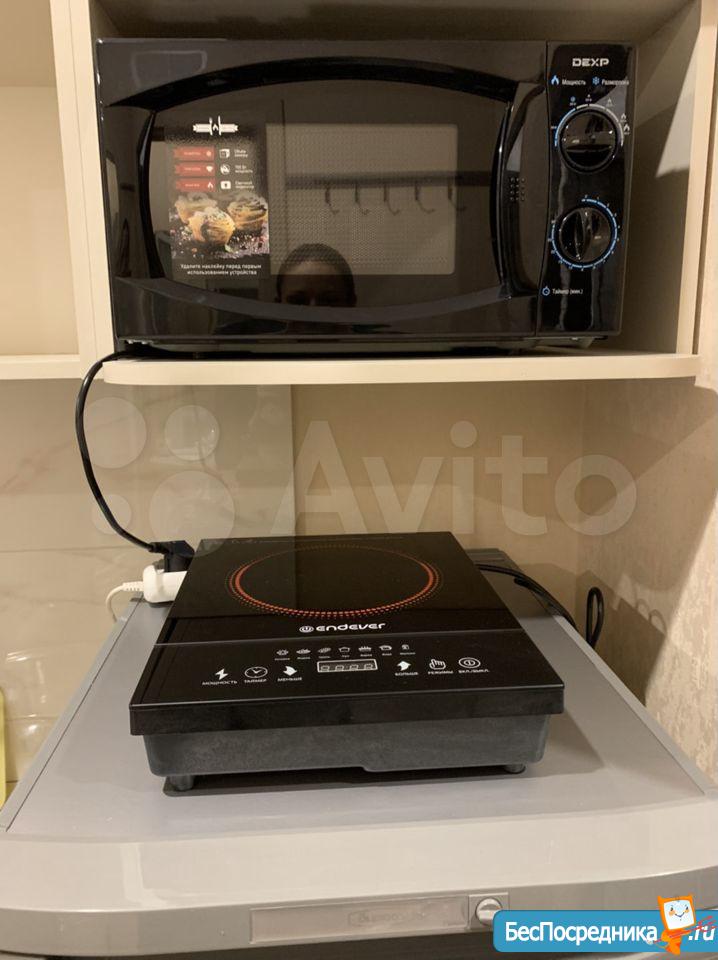 На кухне Индукционная плита, Микроволновка. Можно выбрать удобное и комфортное приготовление пищи.