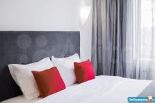 В апартаментах имеется вся необходимая мебель и бытовая техника для комфортного проживания, а так же посуда, двухспальная полноценная КРОВАТЬ, спальное белье, телевизор, пылесос, утюг, чайник, варочная поверхность, холодильник, стиральная машина, гардероб, ножи, вилки, ложки, тарелки, чашки, микроволновая печь, гладильная доска и сушилка, ВАННАЯ с душем, вентилятор.