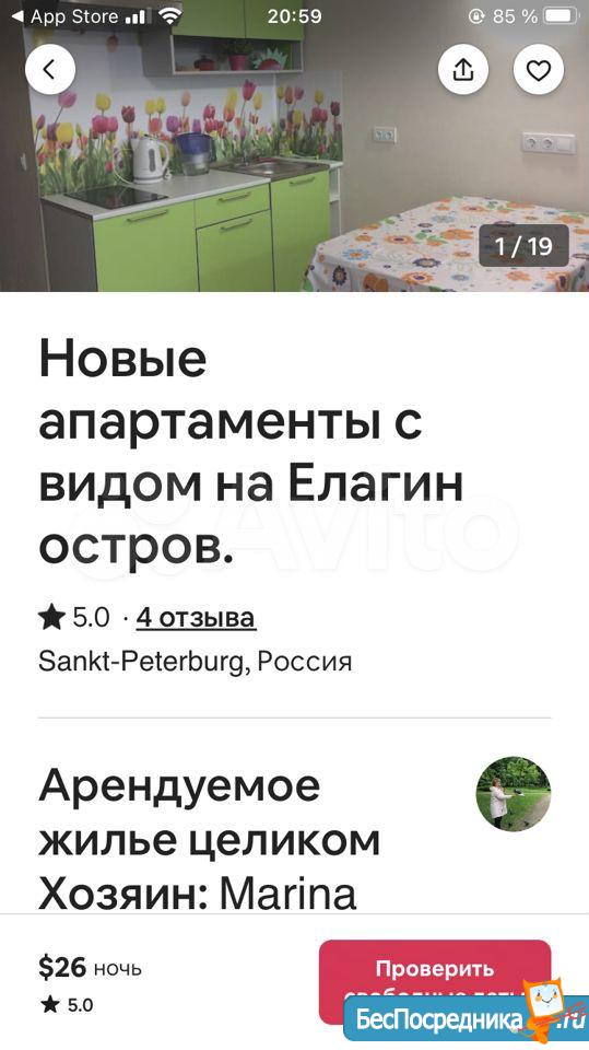 Сдается напрямую от собственника 1 ком. кв., Елагин-Апарт.