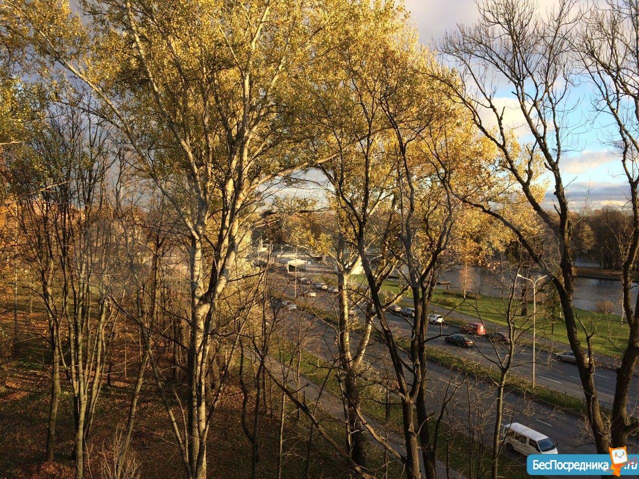 из окна открывается чудесный вид на Большую Невку и Елагин остров;