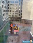 Детская площадка в огороженном дворе;