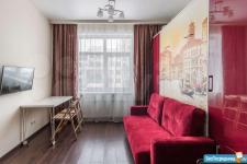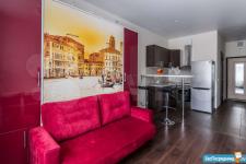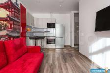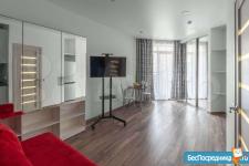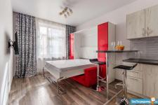 ДИЗАЙНЕРСКИЙ РЕМОНТ: новая квартира уникальна своей функциональность. Особенность студии- это мебель-трансформер: полноценная двухспальная кровать с матрасом фирмы Аскона, диван, небольшой стол и стулья, вместительные шкафы. Так же есть вся необходимая техника: варочная панель, микроволновая печь с функцией духовного шкафа, вытяжка, посудомоечная машина, холодильник, стиральная машина, цифровое телевидение, смарт ТВ, WI FI. В квартире имеется небольшой балкон, с видом во внутренний дворик.
