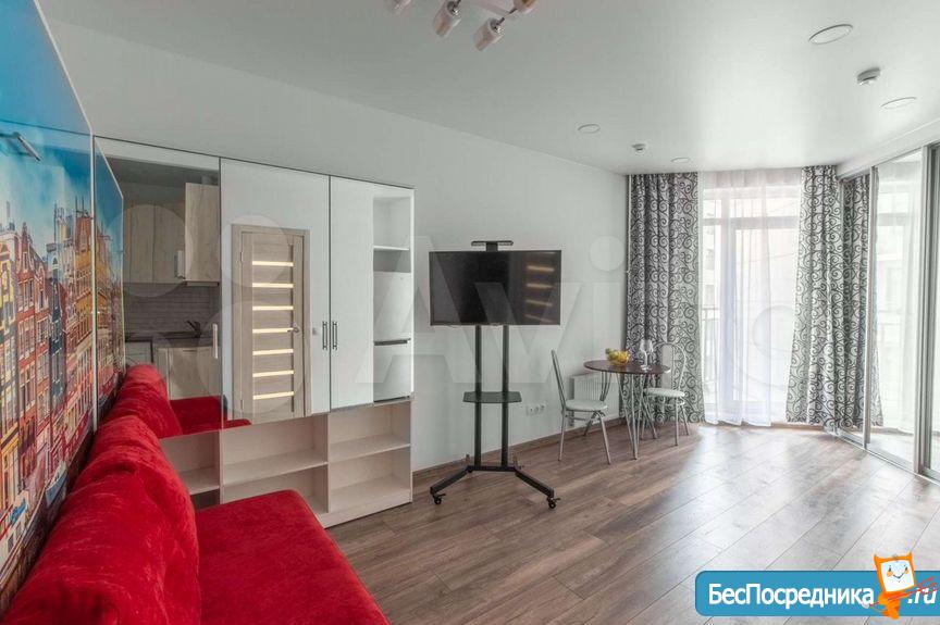 На длительный срок сдается квартира-студия в ЖК бизнес-класса "Елагин апарт". от Собственника! Без комиссии! Только залог в размере 100% от ежемесячного платежа.
