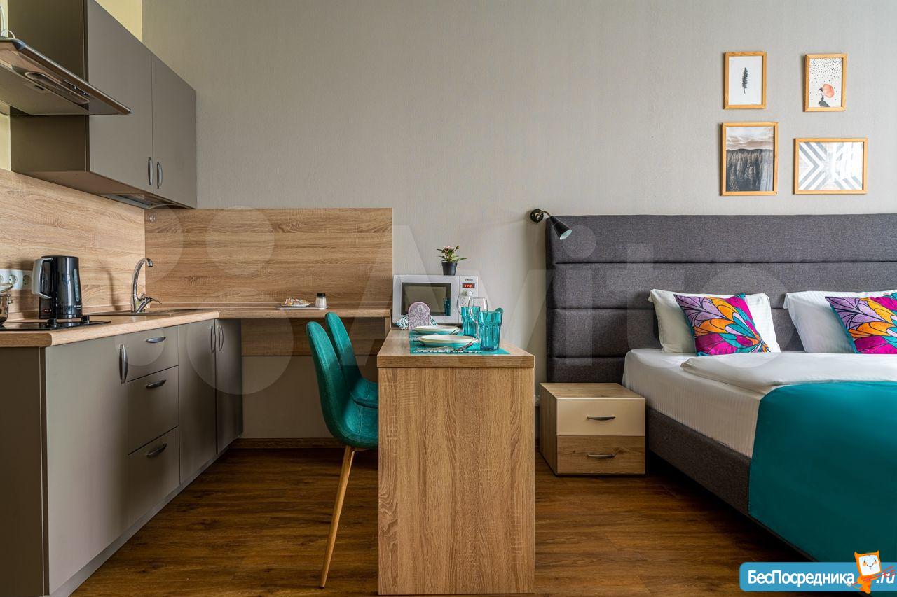 ДИЗАЙНЕРСКИЙ РЕМОНТ: новая квартира уникальна своей функциональность. Особенность студии- это мебель-трансформер: полноценная двухспальная кровать с матрасом фирмы Аскона, диван, небольшой стол и стулья, вместительные шкафы. Так же есть вся необходимая техника: варочная панель, микровалновая печь с функцией духовного шкафа, вытяжка, посудомоечная машина, холодильник, стиральная машина, цифровое телевидение, смарт ТВ, WI FI. В квартире имеется небольшой балкон, с видом во внутренний дворик.