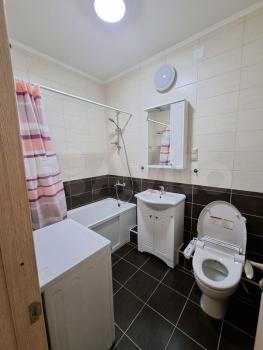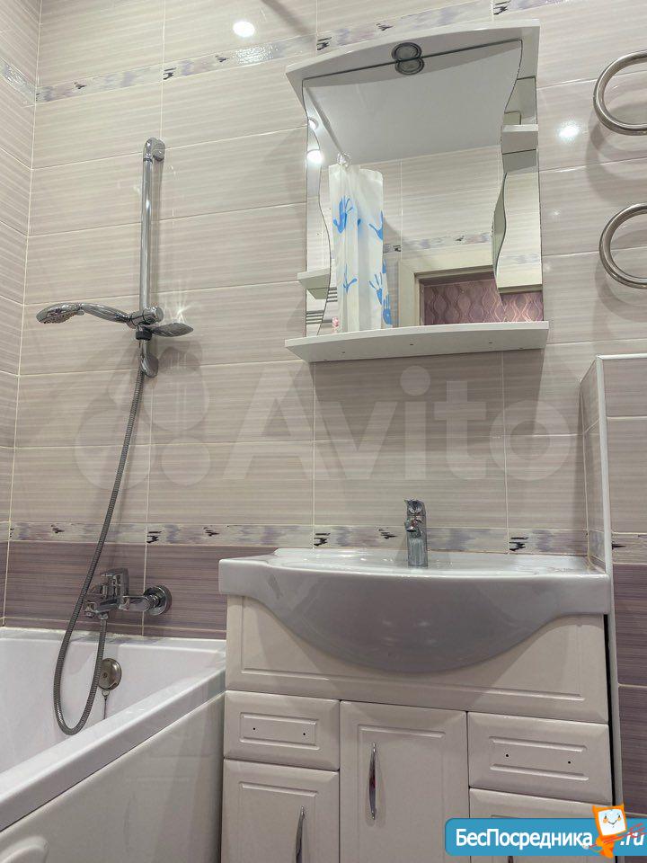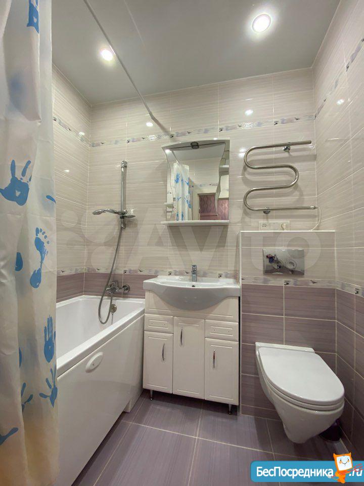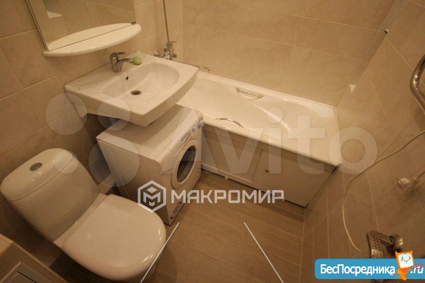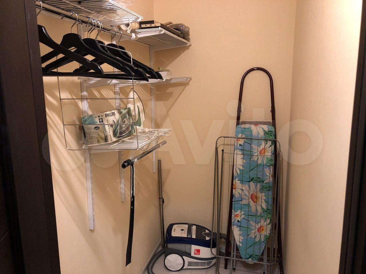 В ванной комнате: ванная, инсталляция, зеркало, тумба с раковиной, теплые полы. Так же имеется гладильная доска, сушилка для белья, пылесос, робот пылесос. Прихожая с банкеткой, есть гардеробная для одежды. Все как на фото.