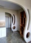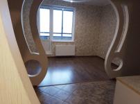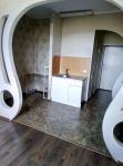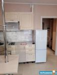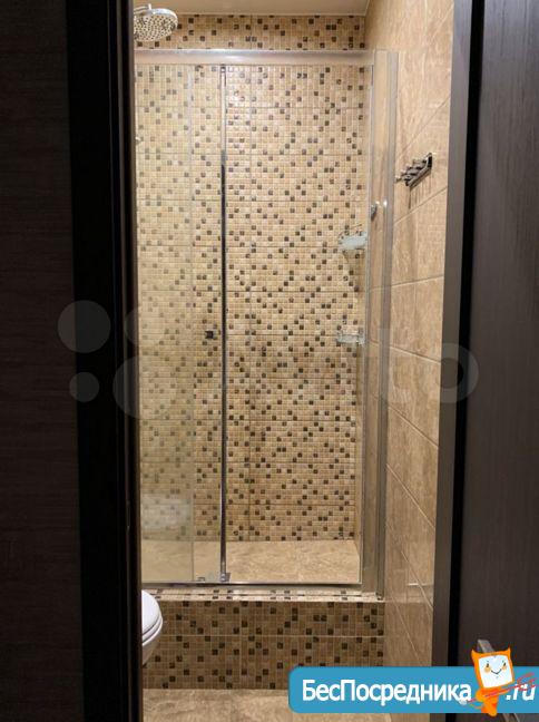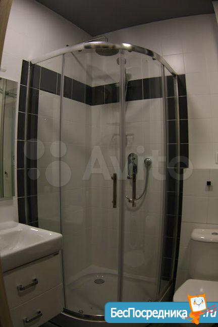 Душкабина, кухонная зона оборудована-стол обеденный, кухня по стене,шкаф-купе в прихожей,потолки натяжные,пол- плитка и ламинат. Балкон: пол-ламинат,стены- панель пвх. Холодильник,диван и стиральная машина.