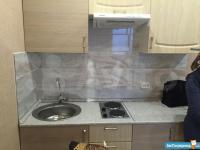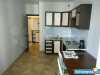 Площадь квартиры 32 кв., жилая 26 кв,+ застекленный балкон 5 кв.м. с линолеумом. Есть оборудованная кухонная зона с электроплитой и обеденной зоной.