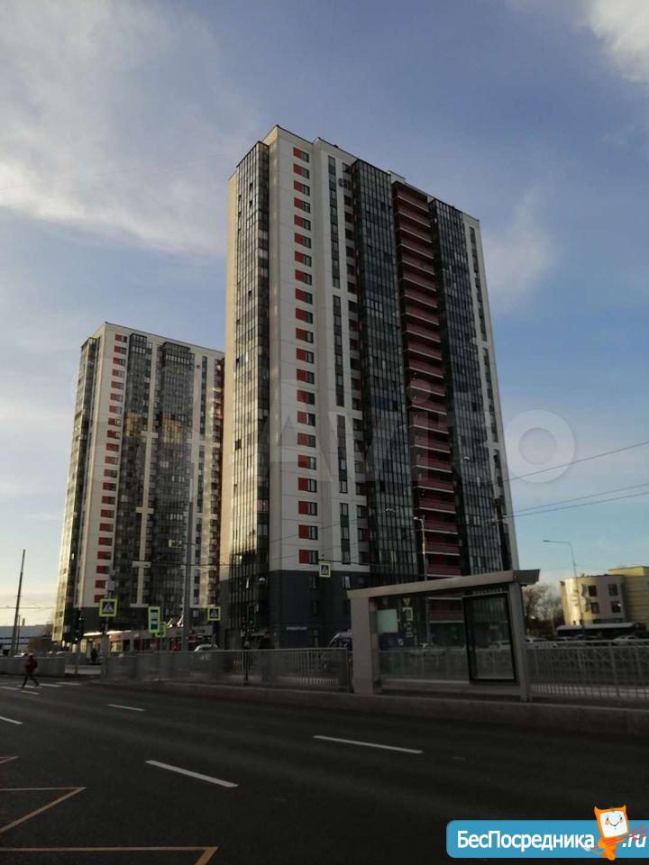Квартира находится в новом доме. Напротив дома автобусная остановка и остановка трамвая "Чижик". Время пути до м. Ладожская 10 минут.