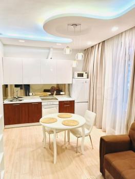 В квартире сделан дизайнерский ремонт. Просторная комната обставлена современной мебелью, а в ванной комнате установлена сауна. В кухне-гостиной есть вся необходимая техника: кондиционер, холодильник, телевизор, посудомоечная машина. Балкон станет приятным местом для отдыха на свежем воздухе. Подключен интернет.