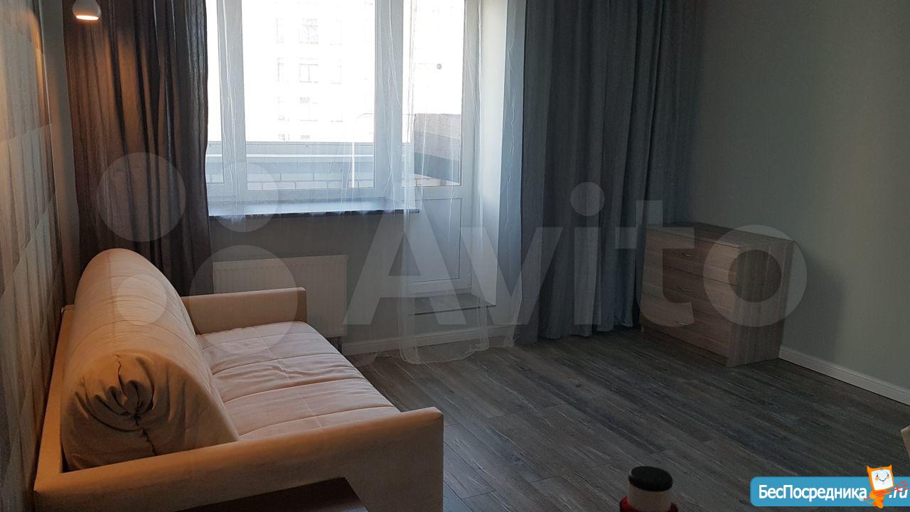 Сдам 1-комнатную квартиру площадью 42 м. кв плюс балкон 4 м. кв на восьмом этаже тринадцати этажного дома в ЖК Platinum. В квартире оборудована кухня-гостиная площадью 14 м.кв. с посудомойкой, варочной панелью, духовым шкафом, холодильником (2 м), микроволновой печью и ортопедическим диваном. В комнате площадью 19 м.кв размещается ортопедический диван (Аскона), комод, журнальный стол, вместительный шкаф на три секции и спортивный тренажер (при желании можно убрать).