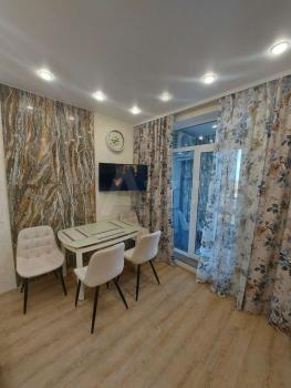 Квapтиpa оcнащeна дизайнepским ремонтом, что создает уютную атмосферу. Просторная кухня площадью 14 м² позволяет комфортно готовить и принимать пищу. В комнате установлены четыре спальных места, а также имеется телевизор.