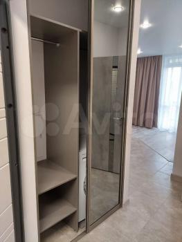 Квартира в ближайшее время будет доукомплектована удобными шкафами в прихожей и спальне, столом на кухне, шкафом с зеркалом в ванной комнате.