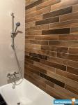 Роскошные санузлы (два совмещенных): один в темной плитке от вельрой энд бош, с душевой системой хансгрое, раковиной из натурального камня и большим «парящим» зеркалом, второй в белой матовой плитке с ванной из литьевого мрамора, тоже парящее зеркало, унитазы Якоб делафон, инсталляции тесе.