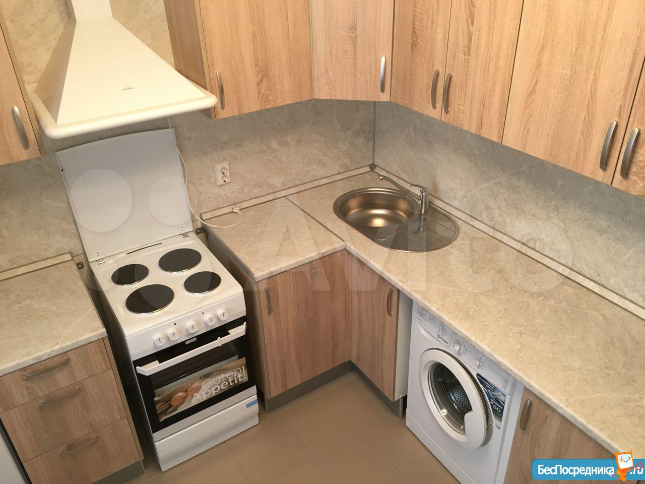 Кухня оборудована бытовой техникой (холодильник и стиральная машина Indesit, плита Hansa, вытяжка). Совмещенный санузел. В комнате на полу ламинат, на кухне и в коридоре плитка. Во всей квартире натяжные потолки. Есть застекленный балкон.