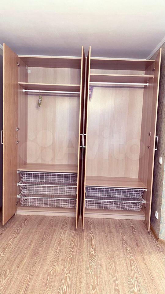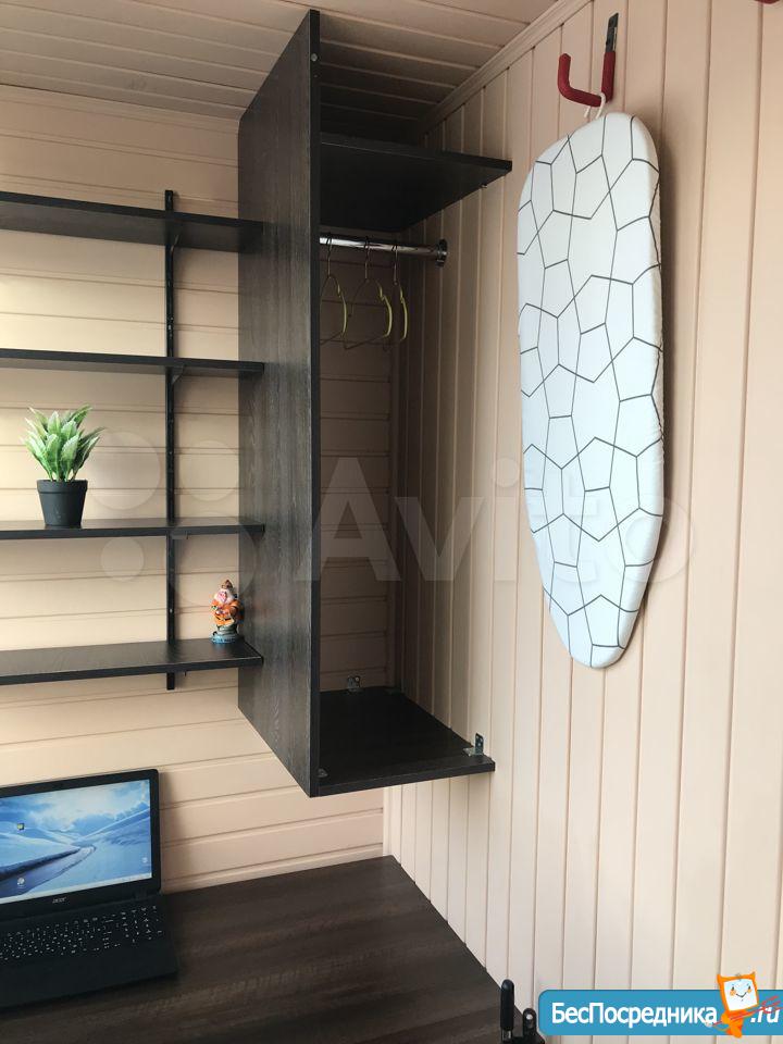 В квартире большой шкаф-купе, диван, кровать, горка, застекленная лоджия.