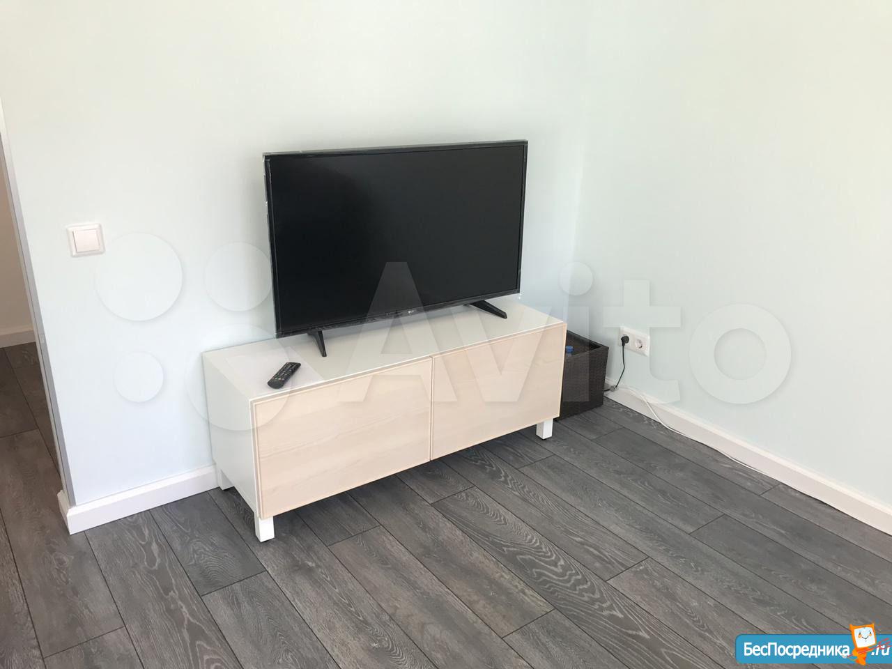 В квартире на кухне- холодильник,посудомоечная машина,плита,вытяжка, кухонная мебель. В комнате-кровать 160см, шкаф,комод,телевизор, рабочий , журнальный стол. Кресло.