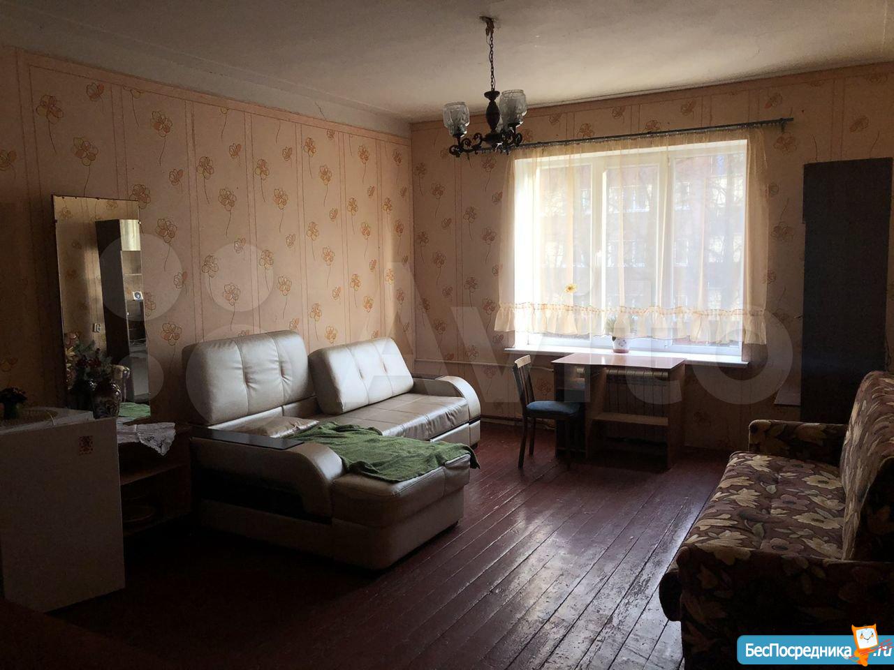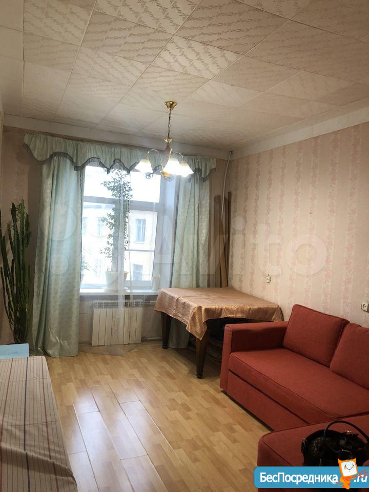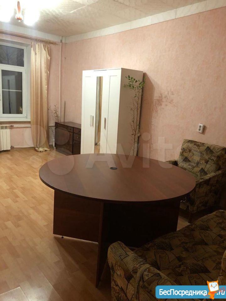 Просторная комната в 10 мин от метро Лесная. В комнате есть холодильник, диван, тумбочки.