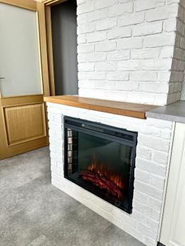 Вентканал задекорирован кирпичом и электрическим камином.