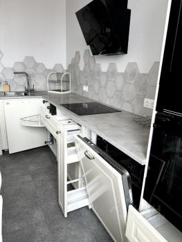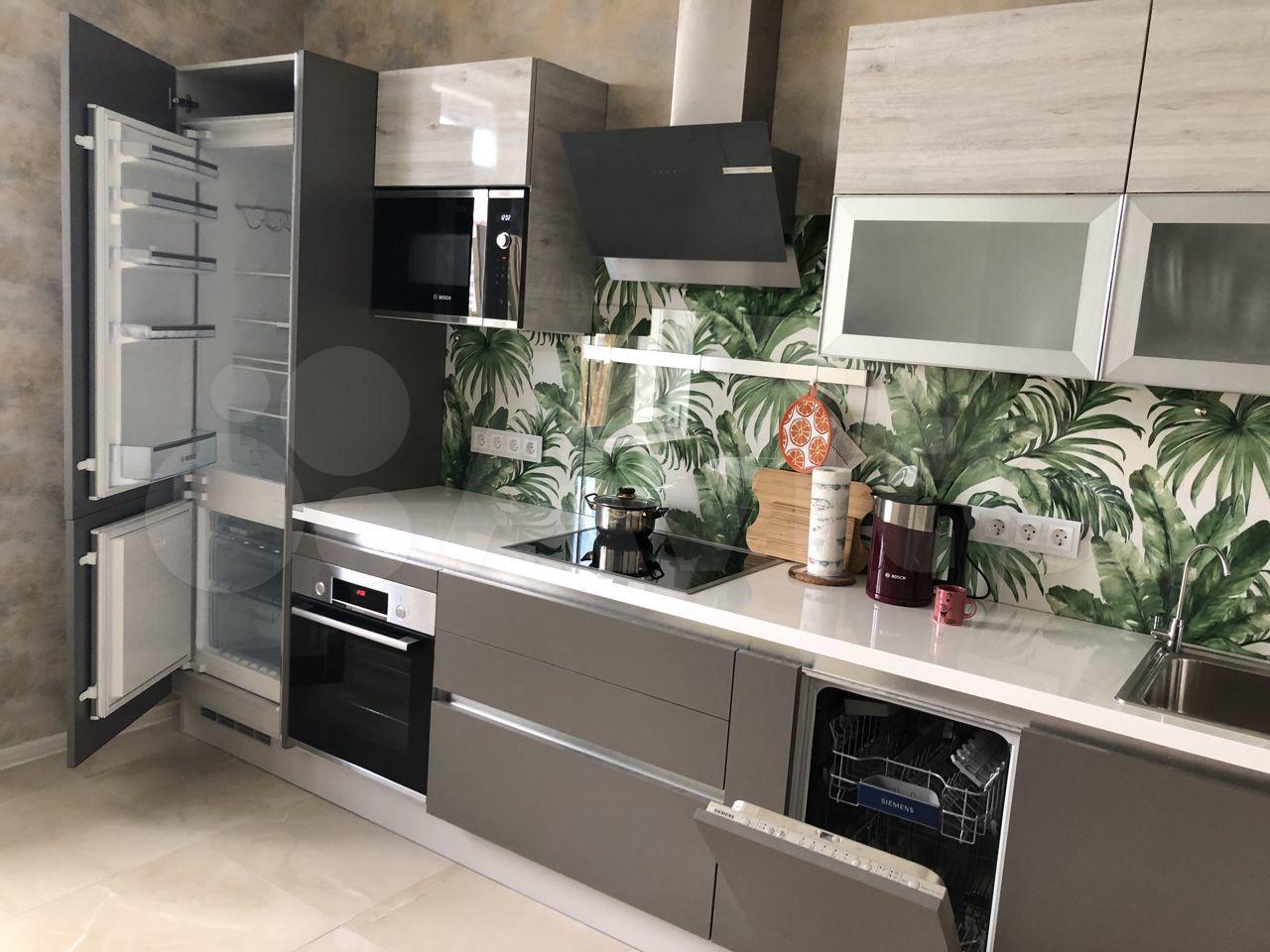 В квартире есть вся необходимая мебель и техника для комфортного проживания, кухонный гарнитур со встроенной техникой и посудомоечной машиной.