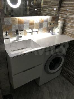 Туалет и ванная комната раздельные. Стол для складывания вещей, деревянная лестница для полотенец и маскировки корзины. Стиральная машина.