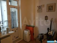 Гостиная: диван , шкаф зеркальный купе, телевизор. Выход на большой балкон с окнами в пол. Незаменимая вещь в летний период - кондиционер.