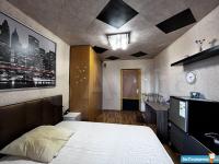 Комната полностью укомплектована мебелью, стоит мини-холодильник.
