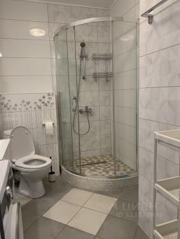 В ванной: душевая кабина, зеркало